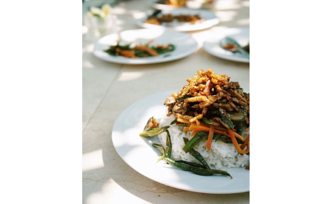 Spend a night in one of our five wooden bungalows overlooking our garden. Enjoy the simplicity of our rooms, all built by local artisans using natural materials. All the buildings are earthquake-proof and designed to have the smallest impact on our environment. They are all equipped with solar-panels. Try our homemade sourdough breads, vegan pancakes, banana crumble, fresh fruits… Everything we serve is made from scratch at the farm, and you’ll have the opportunity to try a selection of our best homemade jams and nut butters. Enjoy lunch and dinner that is specially made using our seasonal ingredients harvest from our garden. Come and try our flavorful plant-based creations inspired by local recipes. We proudly select quality & locally sourced ingredients.