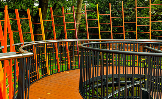 The Forest Buffer is a more tranquil area where you can stroll in the shade of trees and enjoy nature. Tree signage and exciting facts are provided to educate visitors. Forest Buffer is designed adjacent to the Community Garden as a support for social activities that are more relaxed and educational.