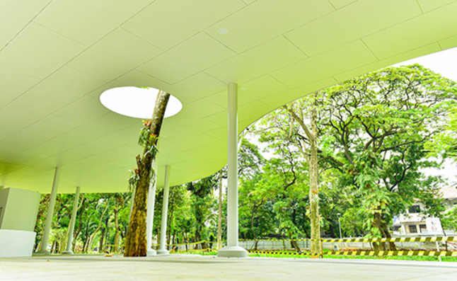 The community lawn uses an existing open space surrounded by butterfly flower trees (Bauhinia purpurea). The Community Lawn hosts more intimate and group-oriented public activities. This is adjusted by the design of turf mounds, which divide the large area into several smaller and private spaces while maintaining the landscape’s unity.
