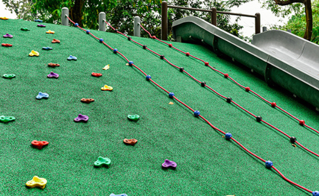 The Children’s Playground Zone takes advantage of significant contour differences between the site’s existing walls. This contour difference is used as a playground element in the form of an integrated slide.