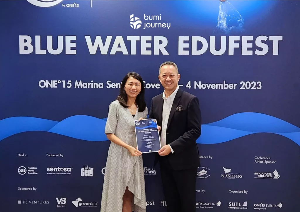 We’re thrilled to share an incredible milestone for our founder, Jessica Novia, the driving force behind Bumi Journey and CarbonEthics, has been honoured as a finalist at The Blue Water Heroes Awards during Blue Water EduFest 2023! This amazing event, hosted by ONE°15 Marina Sentosa Cove in Singapore, celebrates individuals who have made substantial contributions to marine and coastal conservation in Southeast Asia.