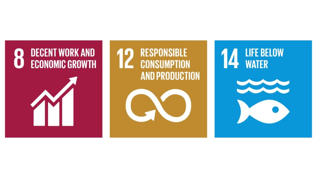 - Target 14.7 dari SDG 14 (Life Below Water) adalah untuk: “Pada tahun 2030, meningkatkan manfaat ekonomi bagi negara kepulauan kecil yang sedang berkembang dan negara-negara yang paling kurang berkembang dari penggunaan sumber daya laut yang berkelanjutan, termasuk melalui pengelolaan perikanan, akuakultur, dan pariwisata yang berkelanjutan.”